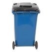 Rain-resistant hinged lid and large wheels ensure durability and ease of use.