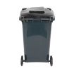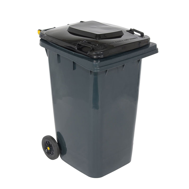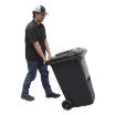 Weather-tight hinged lid and large rubber wheels for effortless mobility.