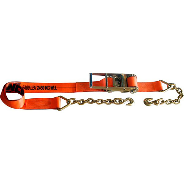 The 3-in. x 30-ft. ratchet strap with chain anchors and X-Treme webbing complies with WSTDA T-1 standards and meets or exceeds WSTDA T-4 standards.